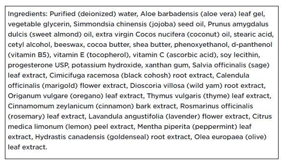 Swanson Menogest inniheldur jurtirnar black cohosh og wild yam. Progesterone er talið draga úr óþægindum sem fylgja tíðarhvörfum.